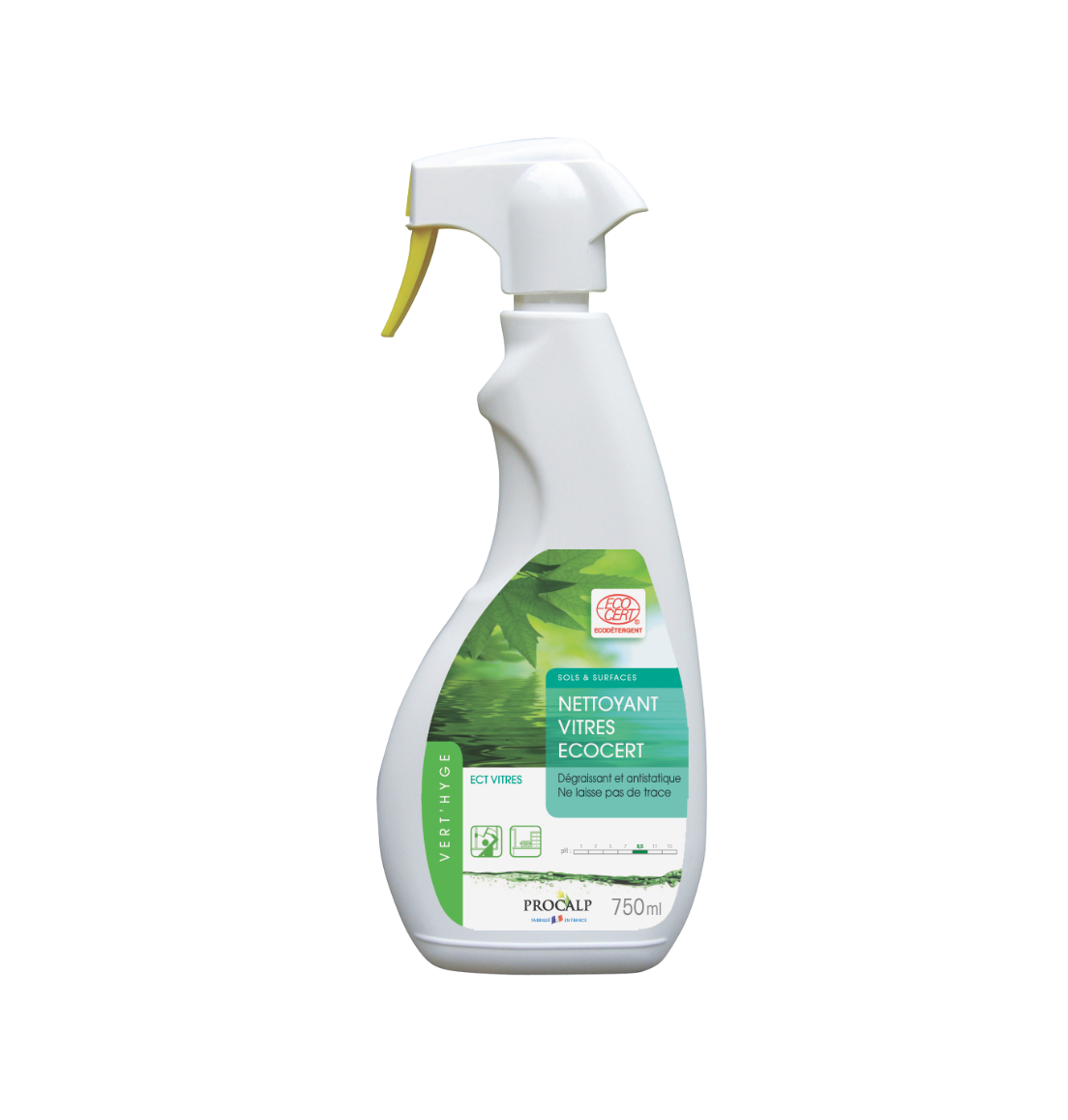 Nettoyant Vitres Ecocert en pulvérisateur de 750ml. Nettoie et dégraisse toutes surfaces vitrées. Anti traces, dégraissant et antistatique.